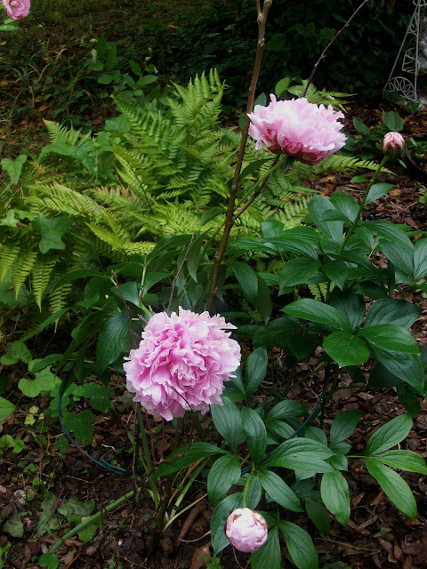Peonies in blue mason jars and found it quite charming, a casual setting for my